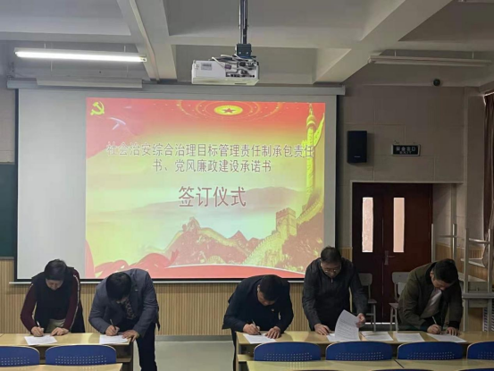 为进一步落实党风廉政建设责任制,加强校园反腐倡廉和安全稳定宣传教育工作,2021年3月24日下午,2026世界杯官网在公司211教室举行党风廉政建设暨内部社会治安综合治理目标管理责任书签订仪式,公司领导、三办主任、系主任、工会主席及全体教师参加了签订仪式。