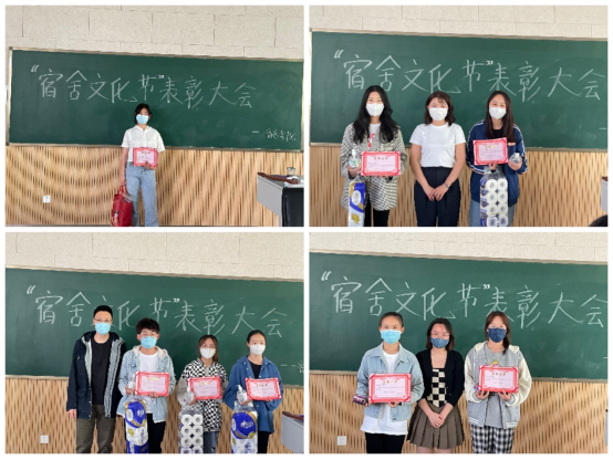 辅导员老师为获奖宿舍颁发荣誉证书和奖品