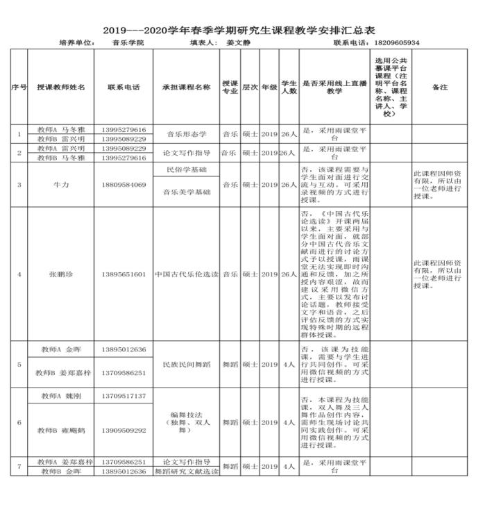原则上按照AB双岗,教师A、B互为替补关系。具体见下列2019--2020学年春季学期研究生课程教学安排汇总表。