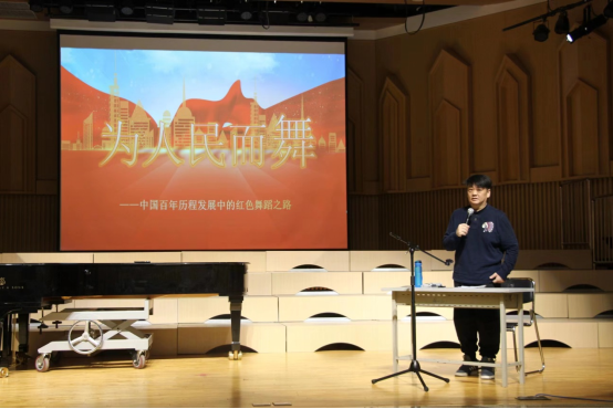 雍飏鹤老师从红色文化入手,详尽的介绍了新中国的舞蹈创作之路,通过经典红色舞蹈向同学们展开了一部波澜壮阔的奋斗史,在场的同学们无不为之动容。