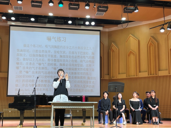 吴丽霞教授从音色、音域、气息、科学的发声等方面,为师生们的嗓音健康做了详细的介绍和解读,使在场的师生受益匪浅。