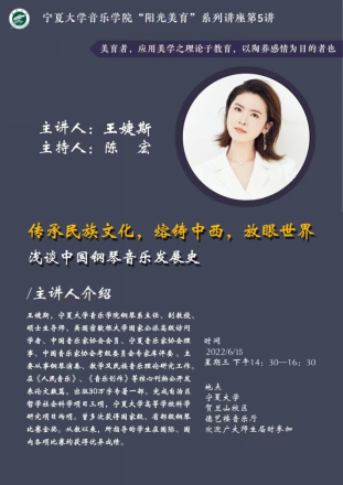 6月15日,第五讲,王婕斯老师《传承民族文化,熔铸中西,放眼世界——浅谈中国钢琴音乐发展史》
