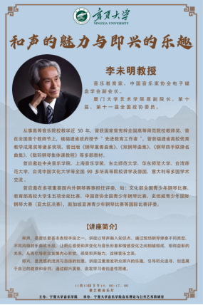 和声,是音乐最基本表现手段之一。讲座将声音融入知识点。通过现场钢琴弹奏不同类型、不同风格的乐曲或乐段,让听众感受和声变化与音乐形象和情感变化之间相辅相成、相得益彰的关系,从而引导听众培养内心听觉,感受和声魅力,诠释音乐之美。