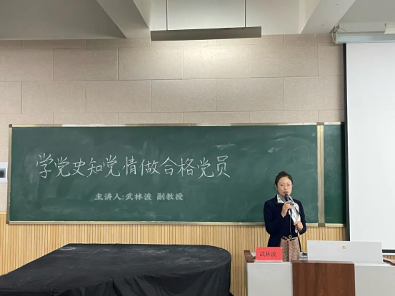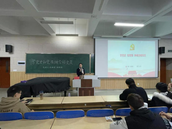 武老师指出,今年是中国共产党成立100周年,在全党开展党史学习教育,这是党中央立足党的百年历史新起点、统筹中华民族伟大复兴和世界百年未有之大变局、为动员全党全国满怀信心投身全面建设社会主义现代化国家而做出的重大决策。她从“学党史知党情的重大意义”讲起,讲述了“中国共产党的三大历史贡献”,为同学们分析了“入党意味着什么?”“如何树立正确的入党动机?”“如何以实际行动争取早日入党?”等几个重要问题,勉励同学们努力学习文化知识,提升研究能力;积极参与各项活动,践行为人民服务的宗旨;坚持模范带头,提升自己、影响他人,成为一名志存高远、脚踏实地、知行合一的合格党员。