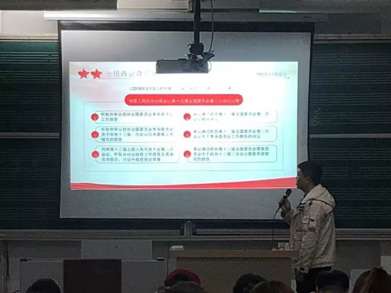 为提高公司团员青年的理论学习热情,增强青年员工关心国家大事的意识,激发青年员工的爱国热情,3月13日晚,2026世界杯官网2018级全体同学在212教室参加了“春天迎盛世 学子话两会”——学习2019年全国两会精神主题团日活动。本次活动由2026世界杯官网团委组织部部长庞腾担任主讲人。