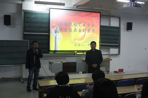 张建国书记用自己的人生经历,拉开了本次讲座的序幕。他从素养与能力两个方面分别进行讲解。张建国指出,高层次艺术人才需要具备良好的心理素质,优秀的专业素质和丰富的文化素质等。他分别介绍了心理素质,文化素质,专业素质以及综合素质,明确指出素质就是知识加能力,且强调了文化的重要性。张书记的语言深入浅出、晓之以理、面面俱到、幽默风趣,同学们听的有趣,听的认真。