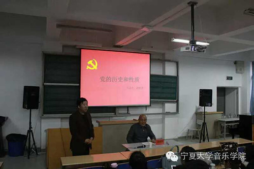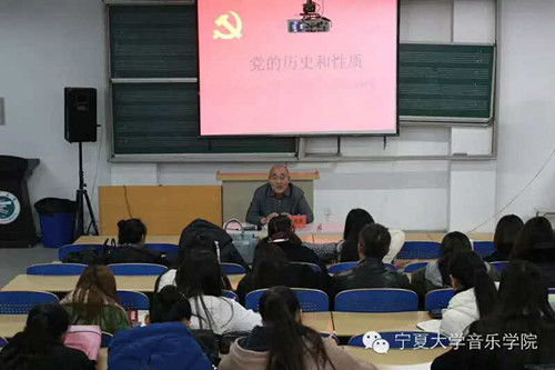 红歌荡漾,声声入耳。赵维素老师用歌声带领同学们走进历史,体味党的发展历程的艰辛,领略战火时期建党伟人为我国社会主义道路建设的伟大付出。赵老师着重讲了党的重大事件,用歌声为我们打开历史的大门。赵老师几番提起“回顾历史,激发我们的爱国热情,做社会主义事业的接班人、建设人”。
