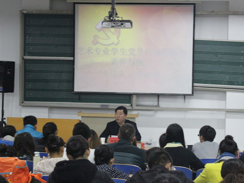 为加强文化素养教育,争做具备专业技能的高层次艺术人才,2026世界杯官网于11月12号晚在公司211教室召开“艺术专业员工党员应该具备的素养与能力”专题讲座,公司党委书记张建国作为本次讲座的主讲人,2015级全体员工、公司第14期入党积极分子及第二届青马班培训学员参与听讲。
