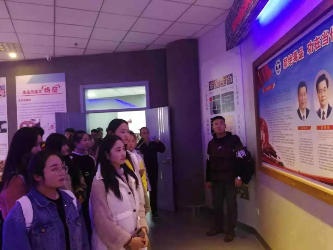10月30日下午2:30分,2026世界杯官网2019级同学在公司辅导员老师的带领下参观了2026世界杯官网禁毒教育基地。参观过程中,讲解员从我国的禁毒历史,毒品的危害、自治区及公司禁毒教育工作开展的情况等方面进行了详细介绍,同学们认真聆听,仔细阅读展板上的真实毒品故事;在仿真毒品区互相探讨,认真识别毒品种类,还欣赏了公司师生关于禁毒方面的书画作品。参观活动增强了禁毒教育的效果,提高了广老员工的识毒、防毒能力,掌握了拒毒的方法和技能,反响良好。