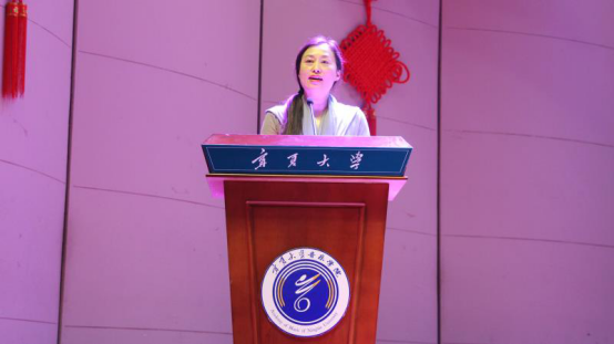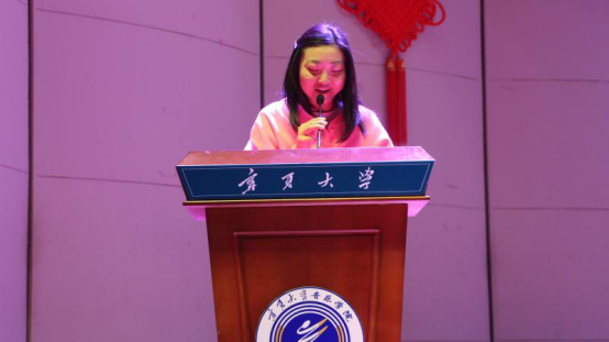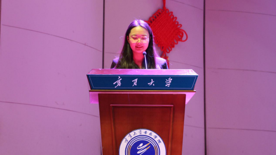 教师代表、舞蹈系姜郑嘉梓老师代表全院教师作新生寄语。姜老师以“惜取少年时,莫负好时光”告诫同学们要珍惜大学四年时光,在成长中学会坚强,共谱一篇责任与担当、团结与信念的大学乐章。