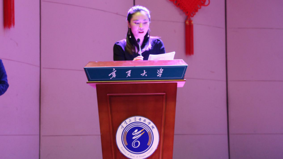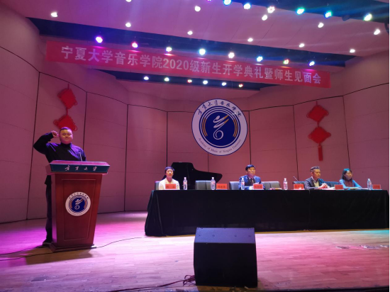 公司员工会主席、2017级音乐学(教师教育)3班本科生张淇同学,带领全体新生齐声宣诵《高等公司员工行为准则》,2020级同学们以此明志:争做新时代合格的老员工。