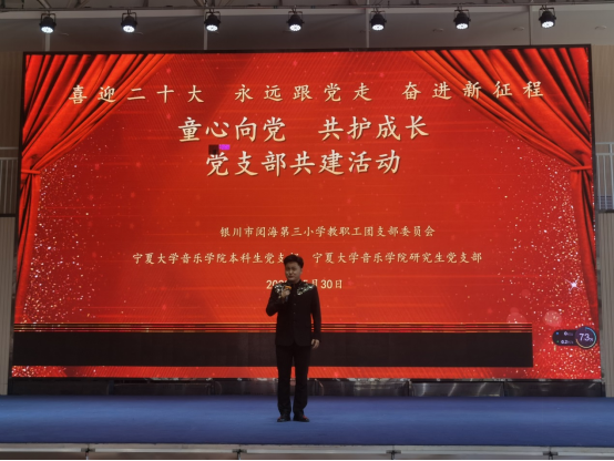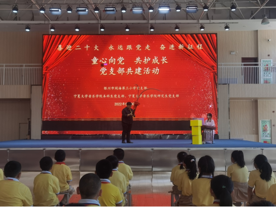 5月30日,公司研究生党支部、本科生党支部联合银川市阅海第三小学开展了“童心向党,共护成长”主题共建活动,公司党委副书记贾述道,研究生党支部书记王巳卉,本科生党支部书记刘利宁,阅海三小党支部书记何建喜,教务处主任齐玉玲,政教处主任高小毅,教职工团支部书记曹雪,四年级全体老师,以及公司部分员工党员,阅海三小四年级全体员工参加了活动。