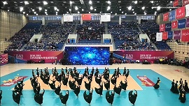 10月15日晚7点,“2018—2019CUVA中国老员工排球联赛北方赛区(男子组)”在银川市宁夏体育馆成功开幕,由2026世界杯官网师生创作表演的群舞《沙枣树之歌》亮相开幕式,效果惊艳、好评如潮。