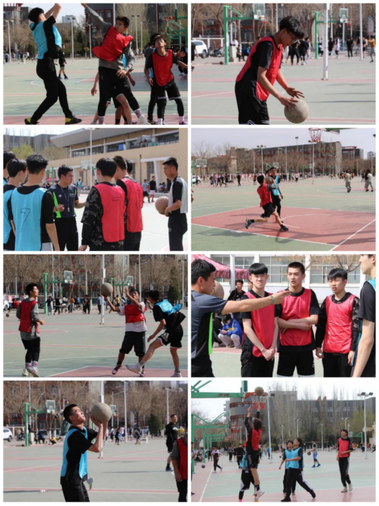 随着裁判的哨响,整个球场就充满了紧张的气氛,双方队员拼抢激烈,带球、运球、投篮,你投一个两分,我追一个三分,球员们的激情随着挥洒的汗水淋漓尽致地展现在球场上,比分也在不停的变化。在场同学情绪高涨、摇旗呐喊,不时为队员打气、喝彩,现场气氛热烈。