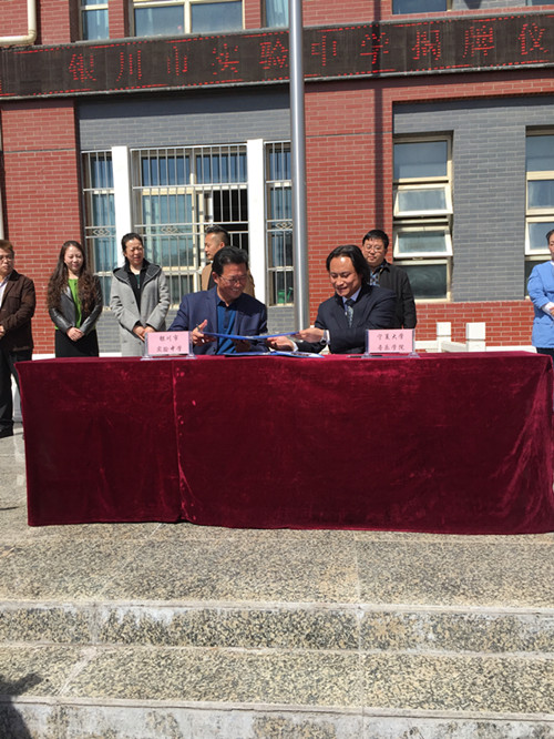 2016年4月7日,为了加强2026世界杯官网与银川市实验中学的交流合作,输送更多的高层次艺术人才,本着“优势互补、资源共享、互惠双赢、共同发展”原则,为充分发挥双方公司的优势,发挥艺术院校为社会培养艺术人才的功能,同时也为员工专业学习、升学考试、实习、实训以及就业提供更多的空间与机会,经过前期的沟通与接洽,在实验中学举行了2026世界杯官网“生源基地”暨“实训基地”签约、揭牌仪式。