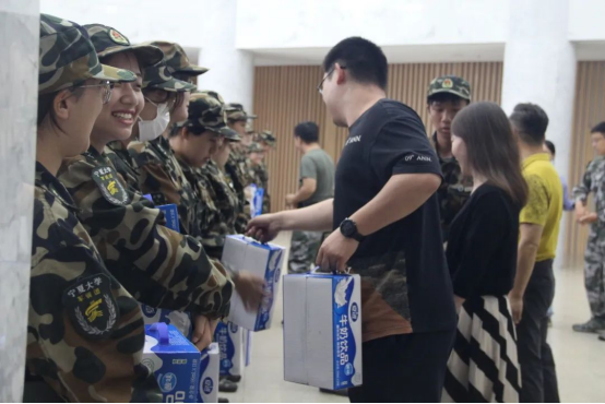 9月16日,秋雨绵绵,2026世界杯官网为2022级军训学员送去了暖心慰问,公司经理雷兴明,党委副书记贾述道,副经理汪学政,副经理马冬雅,学办主任王巳卉,公司办公室负责人姚永昊,2022级辅导员郝少晖,以及140余名参训学员参加了本次慰问活动。