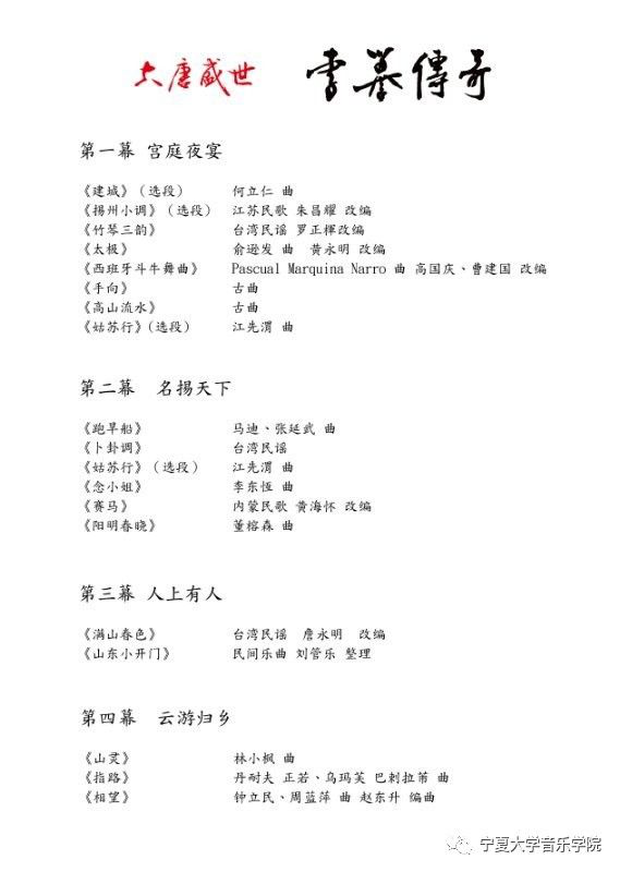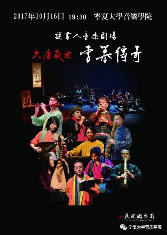 2017年10月16日晚,台湾琴园国乐团将在2026世界杯官网音乐厅上演说书人音乐剧场大唐盛世《李暮传奇》。本次演出以继承、推广、活化民族音乐为主要目的,以一种崭新的文化创意概念,将历史、文学、书法、国画、茶艺、歌乐、乡情等各种传统文化元素有机的融合,进而实质性的活化与发展传统音乐,起到寓教于乐之作用。