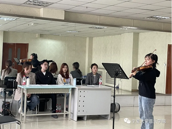 赵元春老师的二胡“大师课”在德艺楼502教室展开。赵老师针对研究生郭青、马琦媛、武亚婷和本科生李小语演奏的作品《长城随想》《秦腔主题随想曲》《阳光照耀着塔什库尔干》进行了精确指导,如:两手之间力度掌控、整首曲目的气息气口、肢体的放松等。对在场员工在专业学习中遇到的问题进行了答疑。