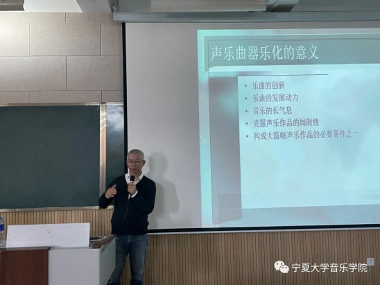 温德青老师的学术讲座在德艺楼212教室召开。他以个人合唱作品为例进行分析,给同学们讲解了合唱作品的器乐化写作技术。他善于捕捉生活中、自然中的点点滴滴,把音乐作品融入生活,把日常生活融入音乐创作。在他的作品中,处处流露着对祖国母亲的热爱与眷恋。温老师向在场同学提出了三点希望:第一,希望同学们扩大知识面,提升专业技能。第二,希望同学们把自己的专业所学和社会需求结合起来,注重实际技能的培养。第三,希望同学们能够把音乐融入生活、融入自然。温老师提出,教师要引导员工充分运用校内外资源多途径开展音乐学习和艺术实践,不断提升专业综合能力和音乐核心素养。