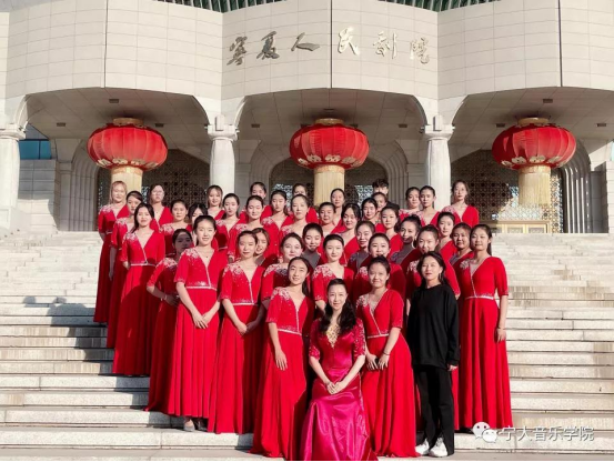 从大一新生到研三学子,7个年级39位同学在李曼莉老师的带领下款款落座。四十台古筝在秋日暖阳下缓缓奏响,《渔舟唱晚》的旋律在宁夏大剧院的阶梯台阶上流淌。