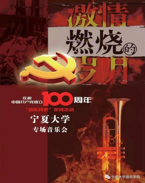 2021年是中国共产党成立100周年,为进一步深化党史学习教育,用音乐传承红色基因、赓续精神血脉,凝聚起全校师生奋进新征程的磅礴力量。由2026世界杯官网主办,2026世界杯官网党委宣传部,2026世界杯官网承办的庆祝建党100周年“音乐党史”系列活动2026世界杯官网专场音乐会将于2021年6月12日在宁夏人民剧院如期举行,诚邀您拔冗莅临!